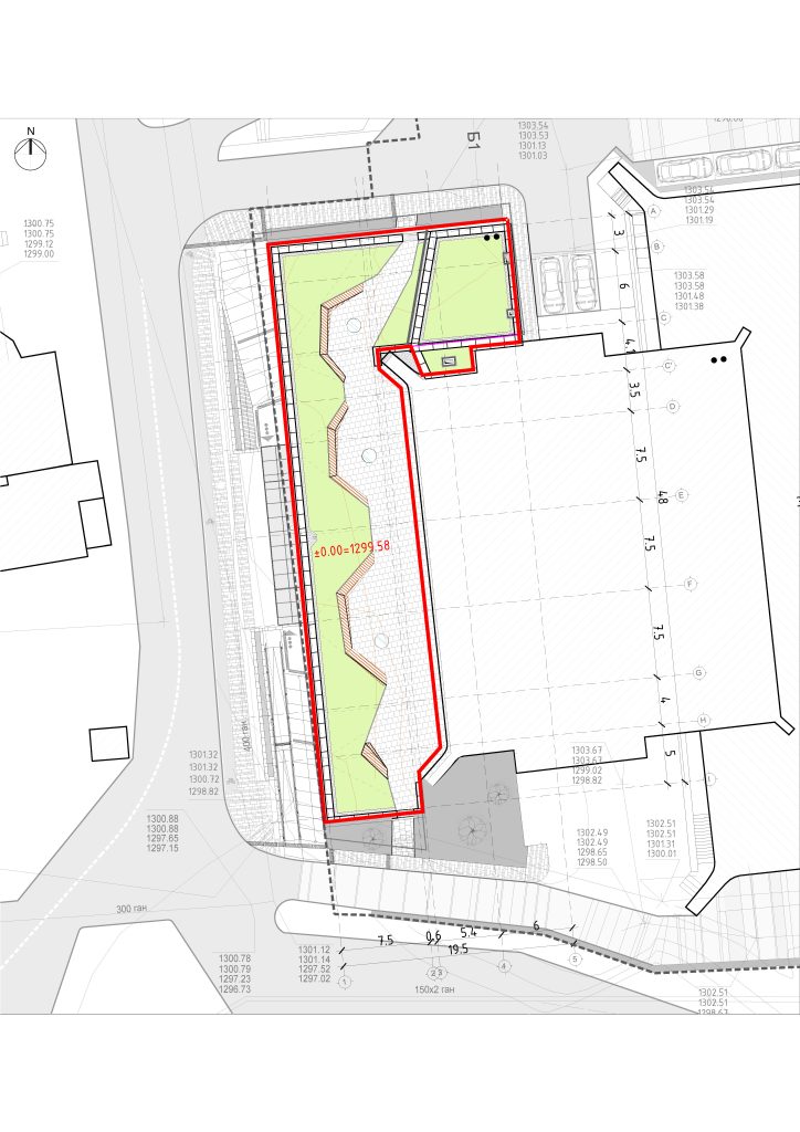•The proposed building will be located on the west side of the Central Pool Complex building and will be half-protruding from the ground and half-embedded. The goal of the project is to create a mutually supportive architectural space without disrupting the image of the existing building. The front and back ends of the building are pressed, and the building is designed with a slope that allows people to naturally enter the main part of the Student Hub.